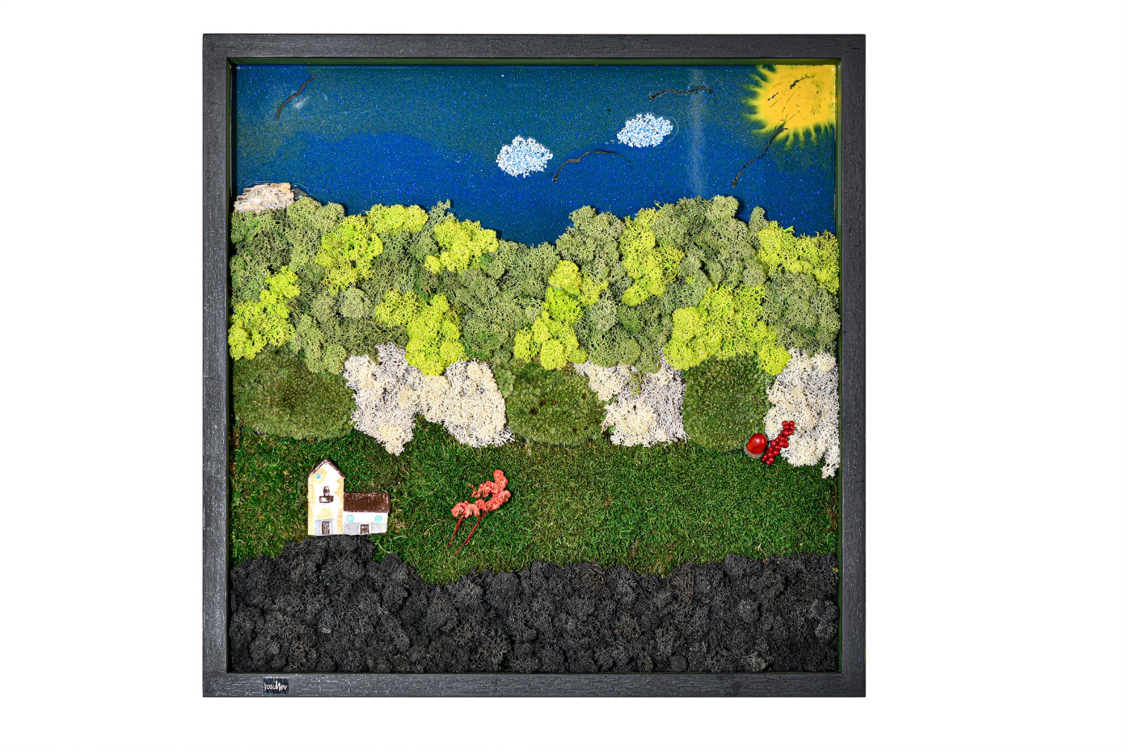 60x60 cm ölçülerindedir. Çerçeveler eskitmedir. Mumyalanmış yosun ile hazırlanan bakim gerektirmeyen %100 doğal malzemelerle yapılmıştır. 2 yıl firma garantilidir. Böceklenme yapmaz ve oksijen salınımı sağlar. Her biri el işçiliği olduğundan aynı tasarım olmayabilir.