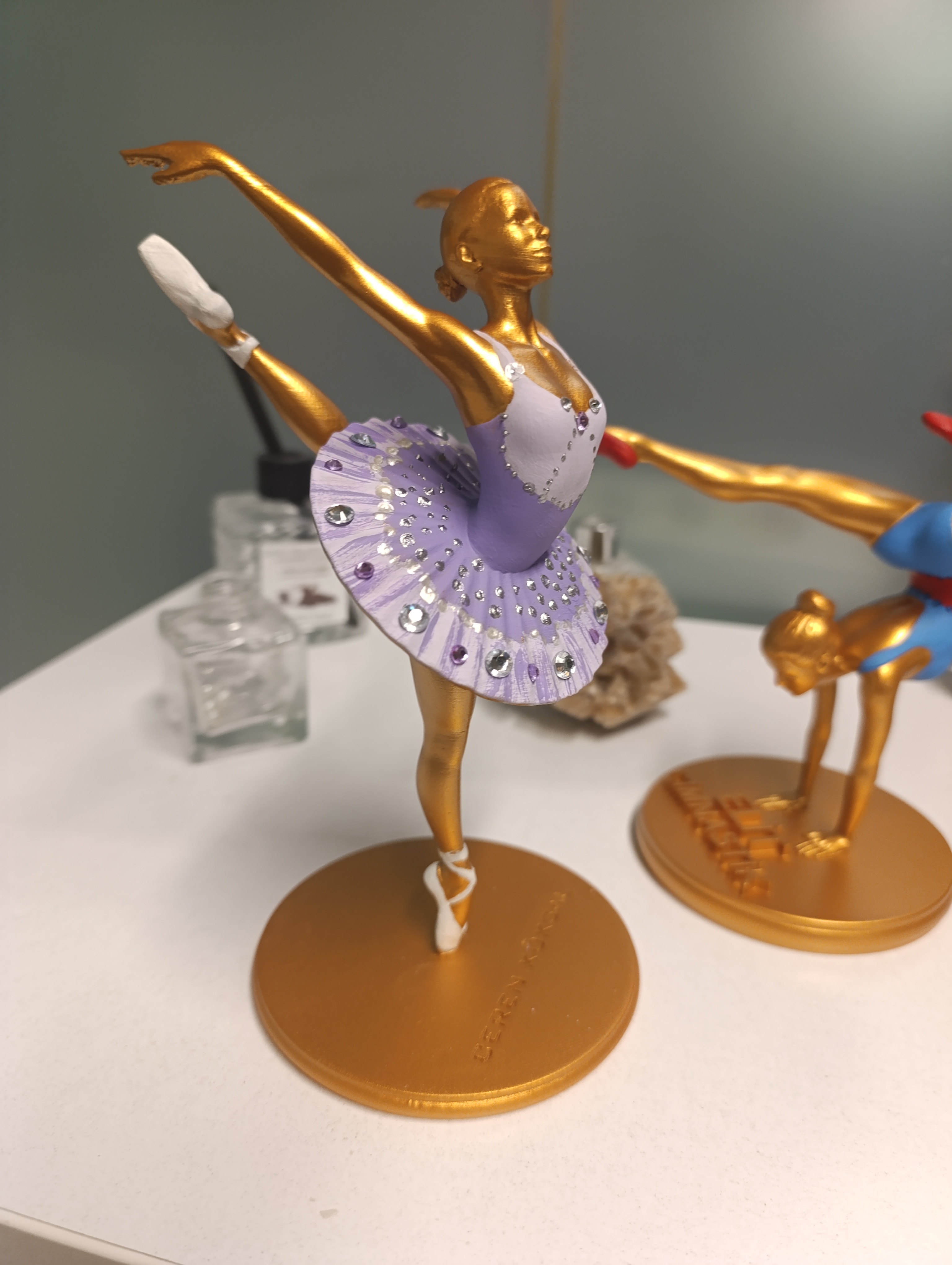 • Gold gövde, Gümüş yaldızlı lila elbise, Beyaz point.