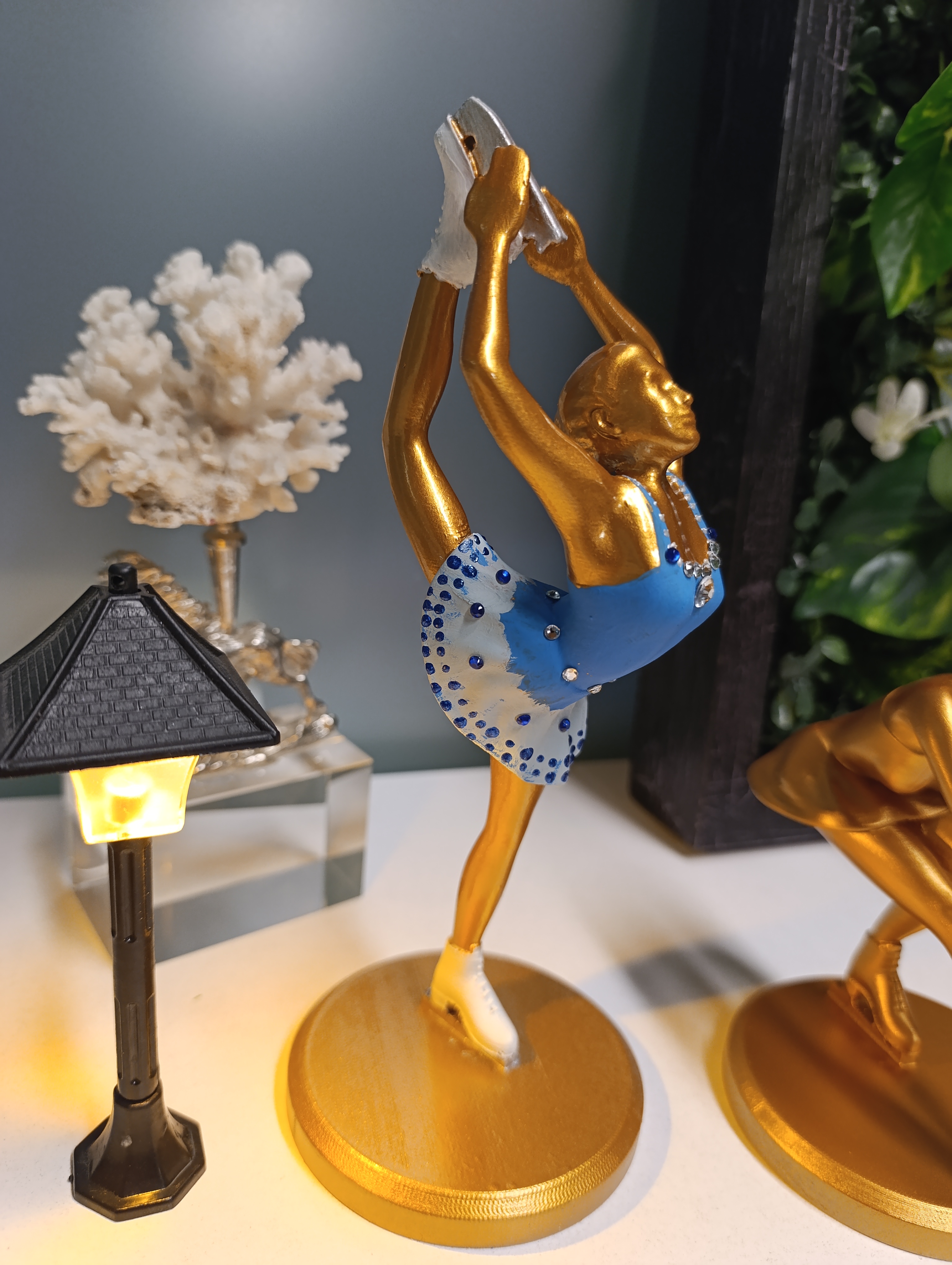 • Gold gövde, Gümüş yaldızlı mavi  elbise, Beyaz paten.