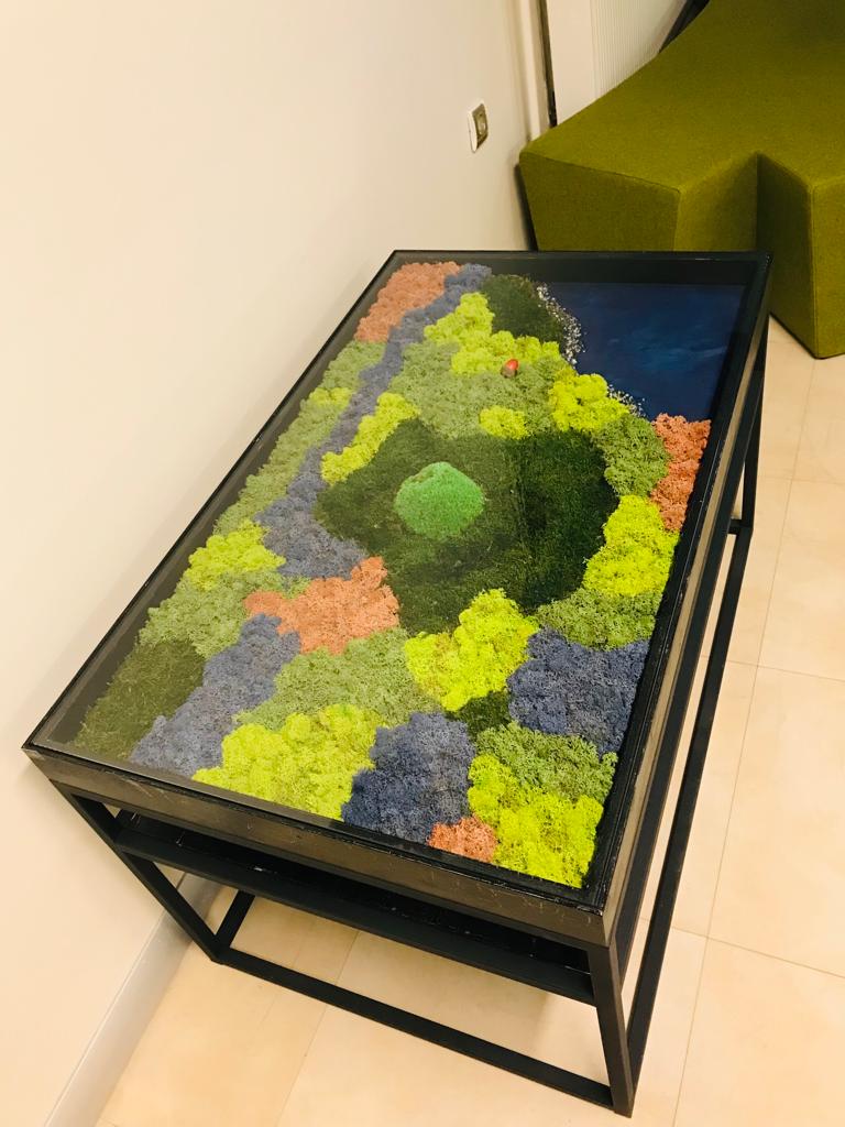 Epoksi ve Canlı Yosun Manzara Dekorlu Sehpa